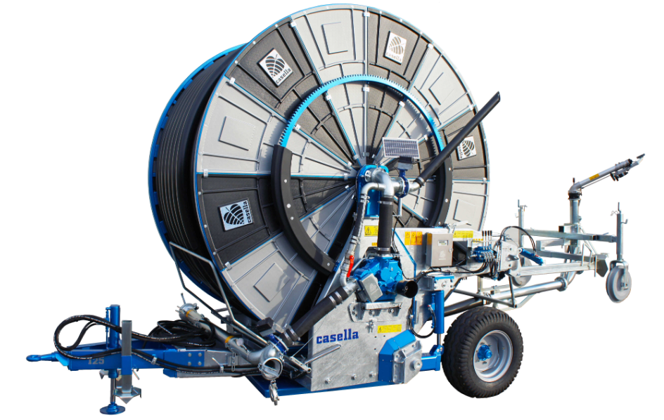 Máquinas e instalaciones para el riego y para la distribución de purines, carretes de riego con la recuperación a motor y a turbina, carretes de riego con moto bomba incorporada, moto bomba para agua y aguas residuales
